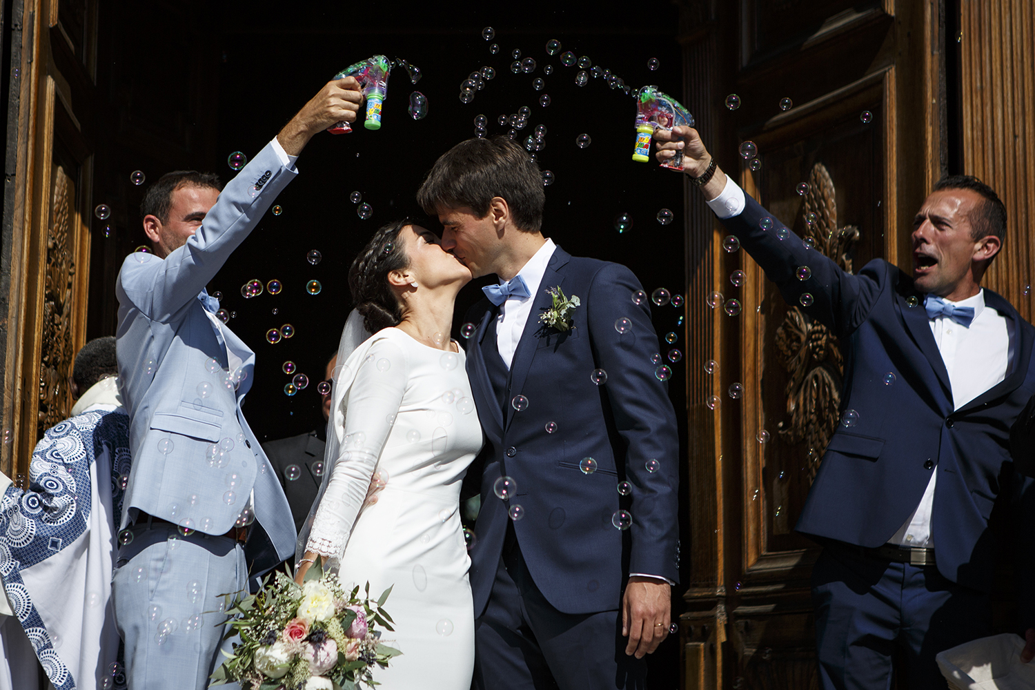 Un des moments forts de notre journée a été la sortie de l'église en triporteur, une alternative amusante et pratique au tandem, surtout avec la robe de mariée. La chanteuse lyrique à l'église et le discours plein d'humour du prêtre ont également marqué nos invités, laissant des souvenirs impérissables.