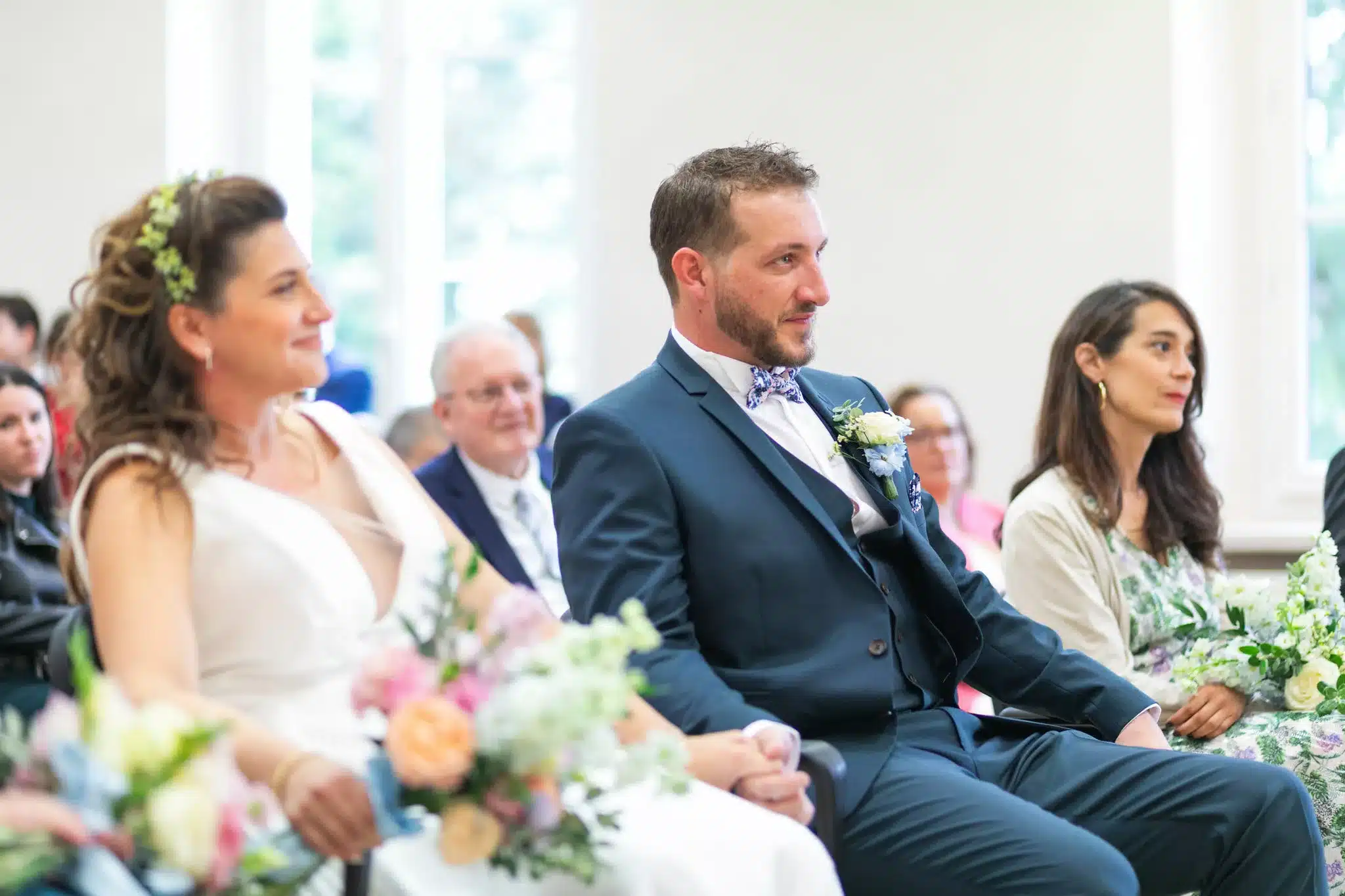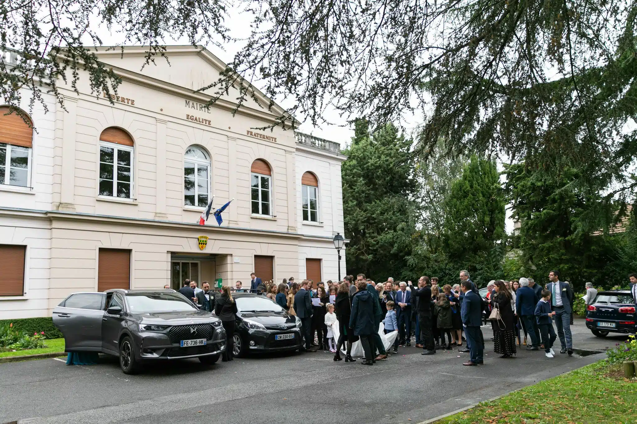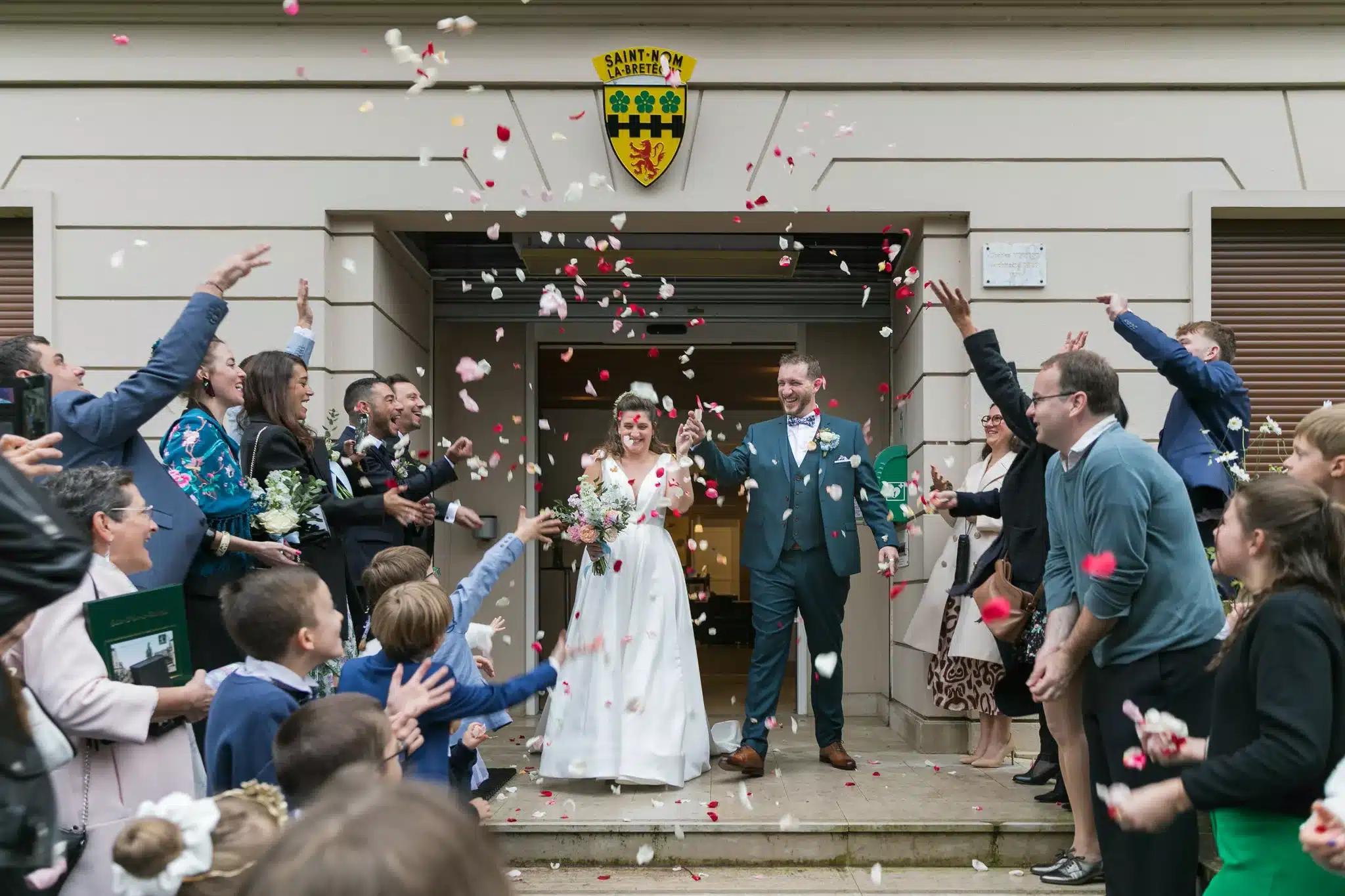 Le mariage de Chloé & Étienne a débuté à la mairie de Saint-Nom-la-Bretèche, dans une ambiance joyeuse et spontanée. À la sortie, les mariés sont accueillis par une pluie de confettis, sous les applaudissements de leurs proches. Les bouquets, réalisés par Chloé elle-même via @sicaevenementiel, apportent une touche très personnelle à ce premier moment fort de la journée.