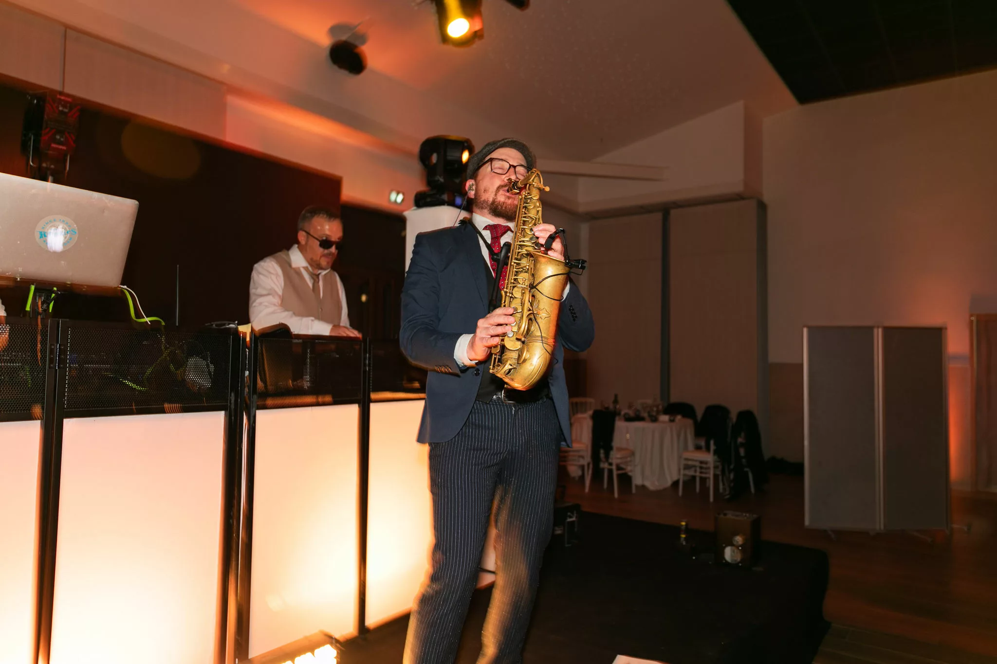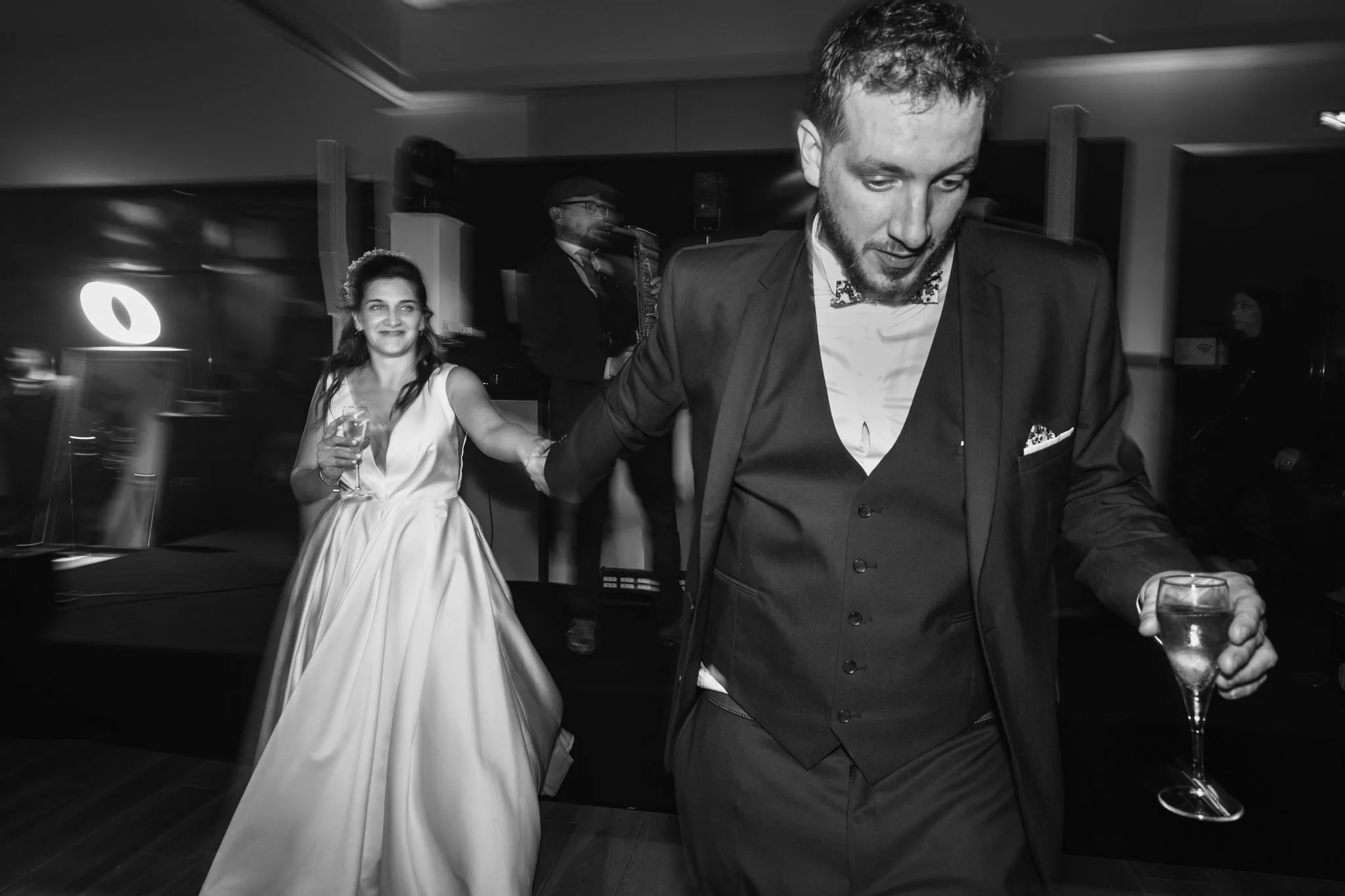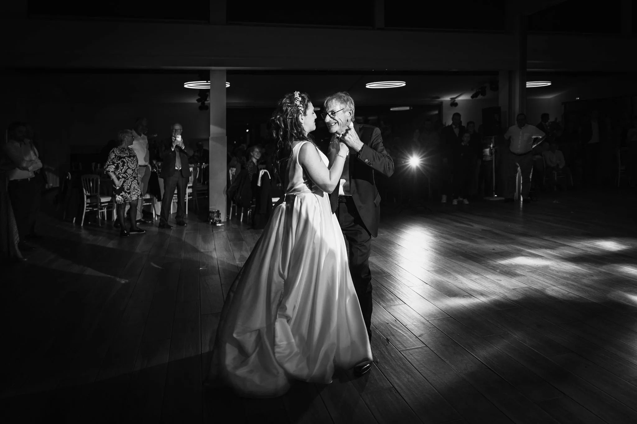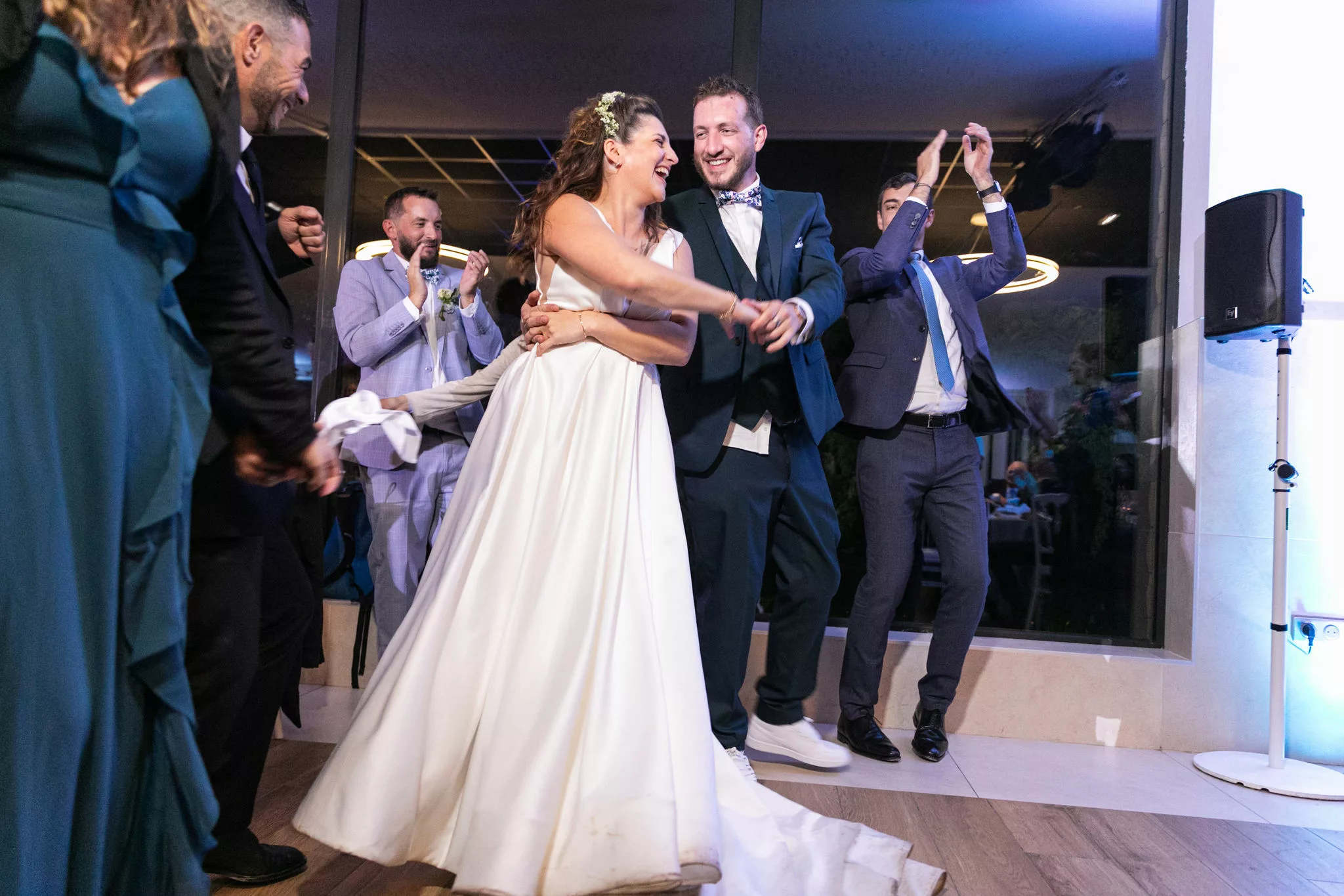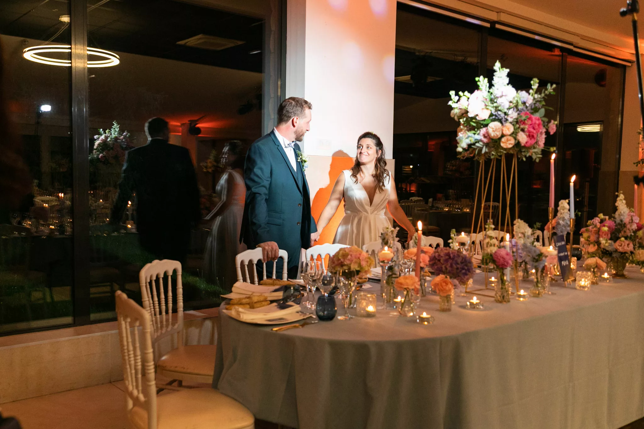 Après la cérémonie, le cocktail prend des airs de véritable moment de partage, porté par un groupe de musique live qui donne immédiatement le ton. Les invités profitent du cadre, échangent, rient et se laissent porter par cette ambiance conviviale avant de rejoindre la salle pour le dîner servi à 130 convives par L’Atelier Traiteur. Certains temps forts de l’animation rappellent aussi l’importance des jeux et moments participatifs, à l’image du célèbre jeu des 12 mois, toujours très apprécié des invités.
