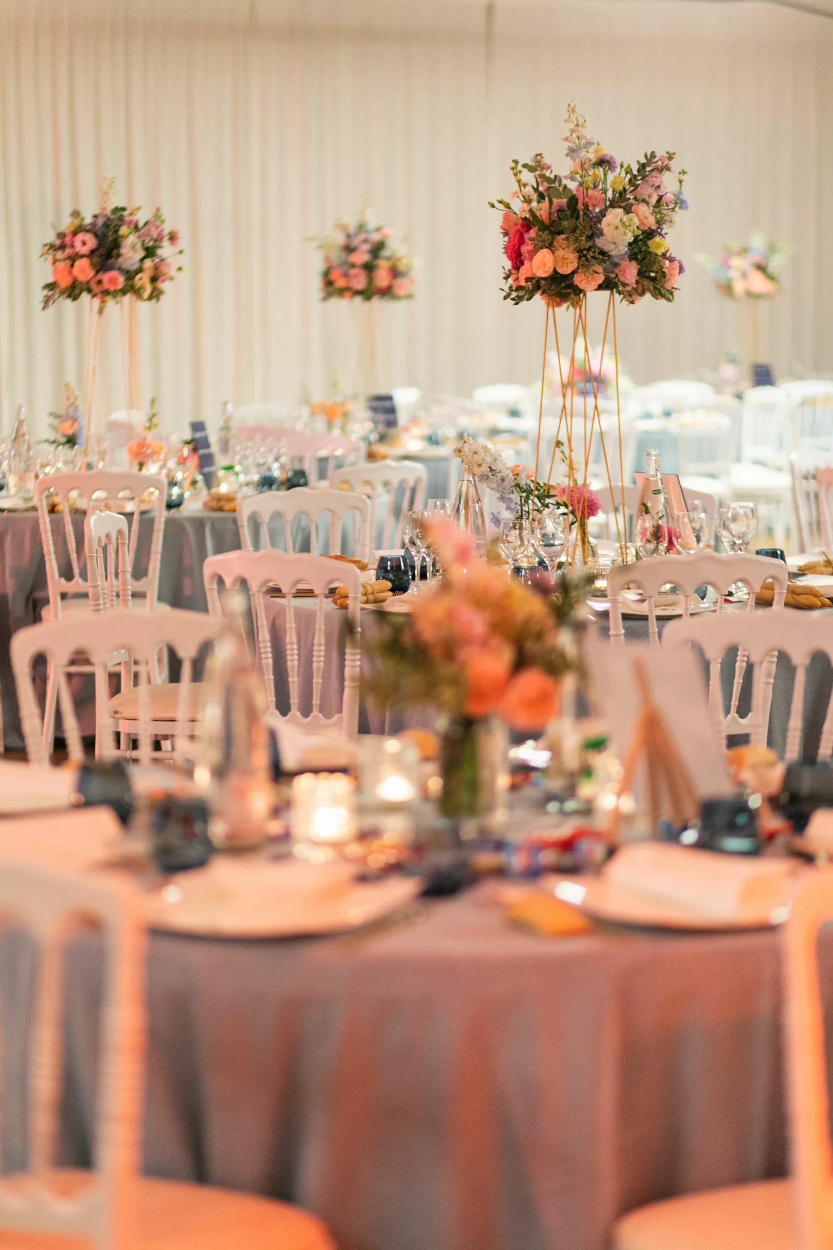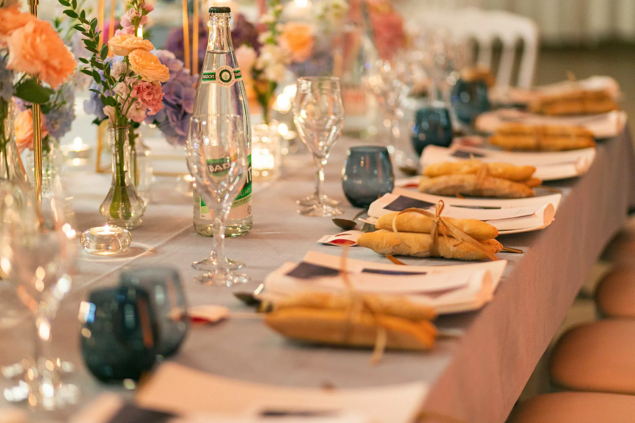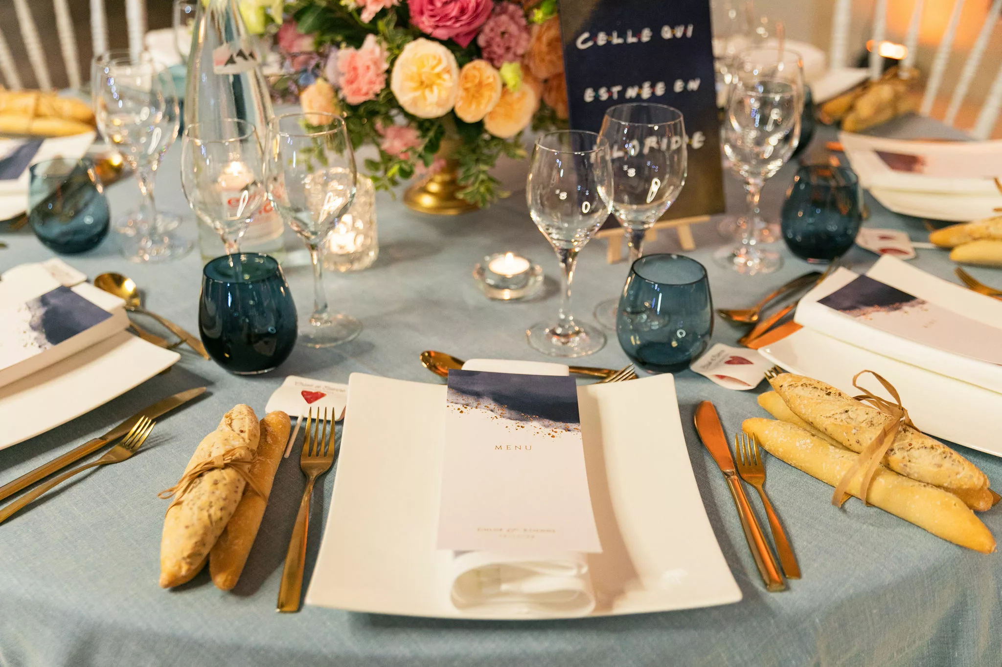 La soirée se poursuit dans une atmosphère résolument festive, entre piste de danse animée par Fiestamania et passages incontournables au photobooth de mariage, qui permet à chacun de repartir avec des souvenirs décalés et spontanés. La décoration florale, dans une palette Color Pop mêlant bleu ciel, rose, fuchsia, pêche et parme, habille les tables avec élégance. Pour immortaliser cette journée, Chloé & Étienne ont fait confiance au photographe Ronan Jegaden et au vidéaste Phénix Films, qui ont su capturer chaque instant avec justesse.
